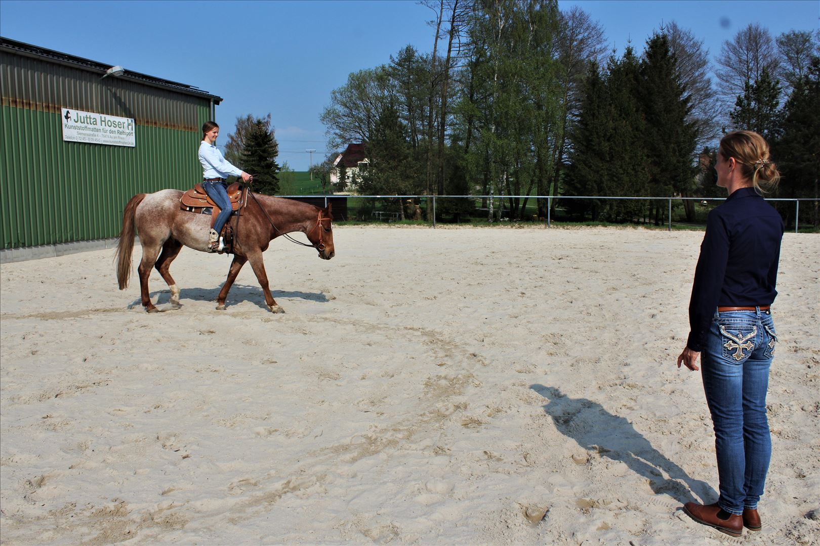 Mit der Reitsportanlage von Westerntraining-Bapp verfügen wir über ideale Bedingungen für Ihr erfolgreiches Coaching bei uns. Hinsichtlich der Arbeit am Pferd stehen eine großzügige Reithalle, ein wunderschöner Reitplatz sowie ein praktisches Round-Pen bereit. Für die theoretische Arbeit besitzt die Anlage einen gut ausgestatteten Seminarraum. Desweiteren stehen ein Gemeinschaftsraum mit kompletter Küche, ein WC und ausreichend kostenfreie Parkplätze zur Verfügung. Eschdorf besitzt eine sehr gute Verkehrsanbindung. Per PKW gelangen Sie von Dresden, der A4, A17 und A13 aus in wenigen Minuten zu uns.